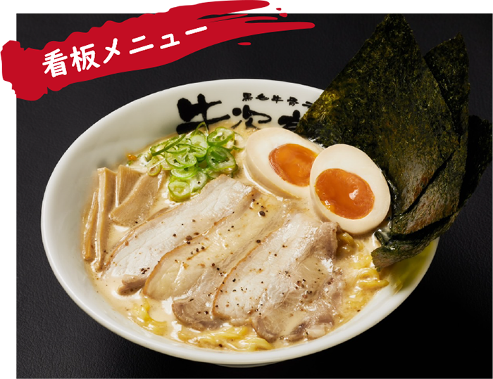素材からこだわった超濃厚牛白湯ラーメン。ラーメンの命のスープは地元の和牛にこだわった、厳選された牛骨のみを使用。丁寧に下処理をし、通常の圧力鍋ではかけられない超高圧調理を実現。特殊圧力寸胴を用いて生み出されるスープはまさに絶品。超濃厚な牛骨の旨味をストレートに感じられる、クリーミーなスープだが、しつこさを全く感じない新感覚。名古屋近郊では珍しい、本格牛骨ラーメンを是非ご賞味ください。